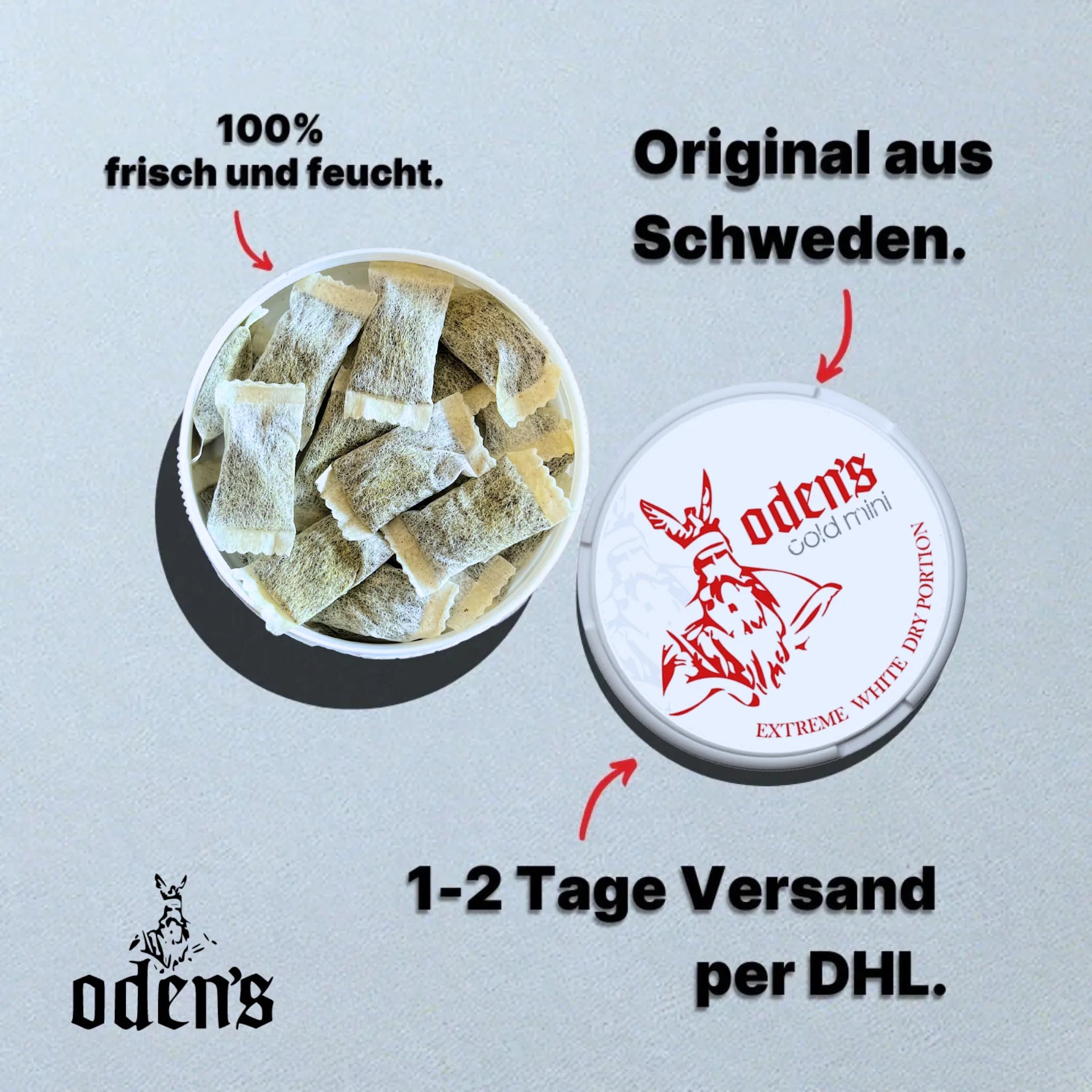 Bei uns erhältst du nur original schwedischen Oden's Cold Dry Mini. Durch unsere innovative gekühlte Logistik garantieren wir Dir den frischesten und feuchtesten Siberia Snus in ganz Deutschland. Die Ware kommt direkt von GN Tobacco ab Werk.